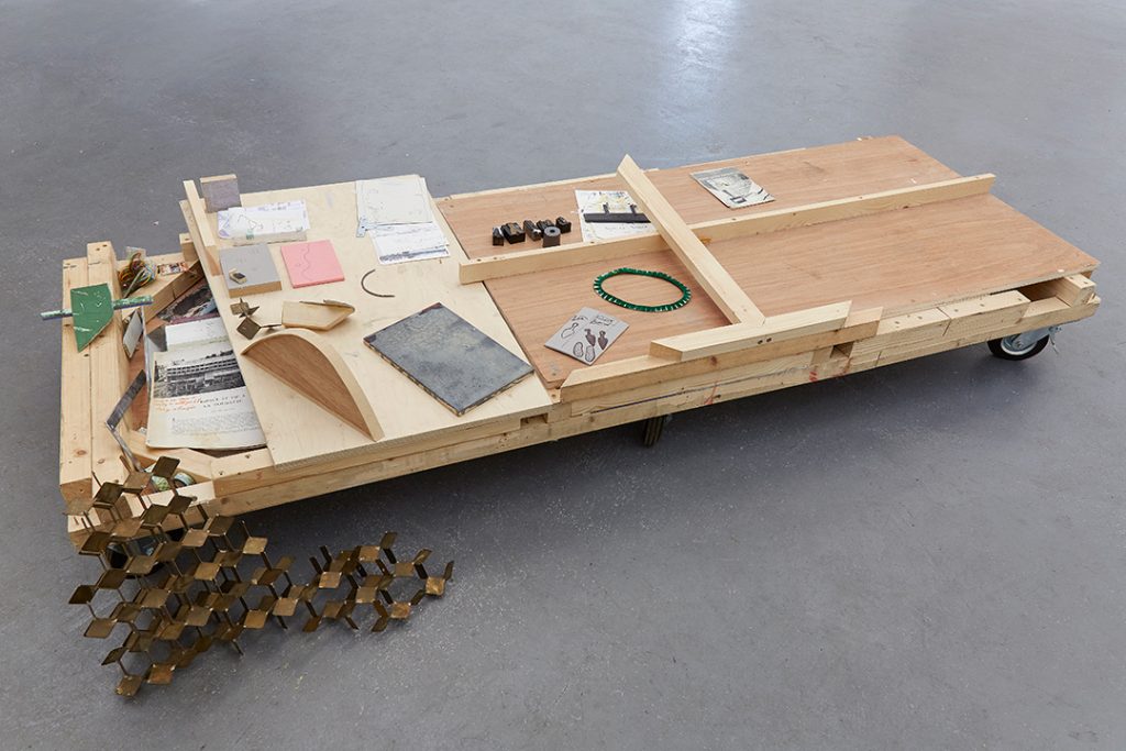 En 2013, Lorraine Thomas créée Charrette lors de la déconstruction d’une grande unité de stockage à Londres. Elle devient successivement unité de rangement, banc, lit simple ou double, objet familier de l’atelier, objet d’art de la galerie. Quatre ans plus tard, un divorce, le Brexit et l’objet devient le symbole de la maison minimum sur laquelle migrer.